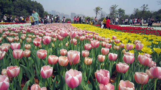 和风拂面,人流如织,樱花怒放,满山花香。樱花林中,每一棵树上的花都已尽情绽放,地上铺了一层如雪的花瓣,天空中有许多花瓣在翻转、飞舞。郁金香园里,成片盛开的绚丽花朵让人惊叹,白的纯净、红的热烈、黄的娇艳、粉的含羞,搭配着荷兰风车,洋溢着浓郁的浪漫风情。竹林中,风信子开得正欢,随风摇曳。从杜鹃广场沿樱花大道到达世界名花园,再沿半山腰上的游步道横穿樱花林,最后绕樱花湖一圈,置身于花海之中,陶醉在如梦似幻的樱花里……这是一种视觉的享受与身心的放松。大家在樱花树下尽情地欢笑、拍照,享受着春天里与大自然最美的一次邂逅!