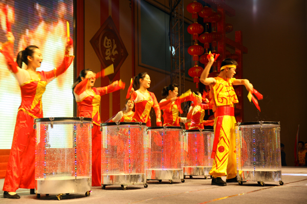 水鼓有节奏地敲响,红旗舞出青春的旋律,williamhill中国官方网站2013新春联欢晚会在激情动感的《鼓舞青春》中拉开了序幕。