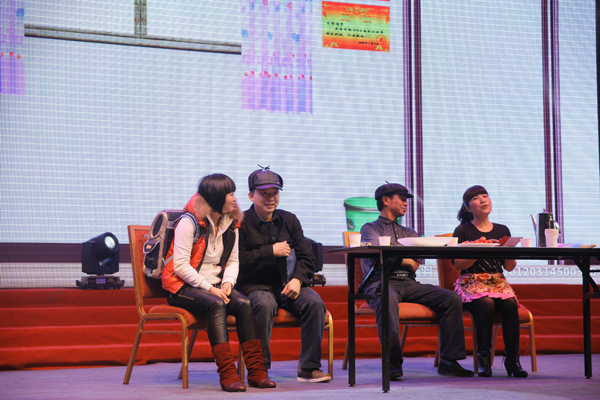 听,古筝独奏《月牙泉》、吉他弹奏《有没有那么一首歌会让你想起我》,旋律宛转悠扬,扣人心扉。政府事务部根据自身工作内容自编自演的三句半,使大家对他们的工作有了进一步了解。小品《同桌的你》、双簧《打电话》由于形式新颖,内容诙谐,妙趣横生,一次次让观众们爆笑不止。最后晚会在歌声《明天会更好》中落下了帷幕。