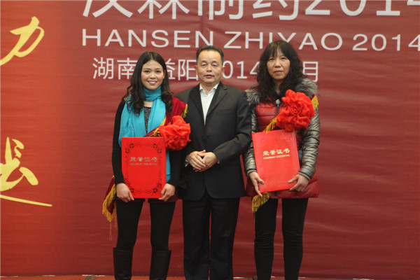 公司董事长刘令安先生为先进集体代表颁奖