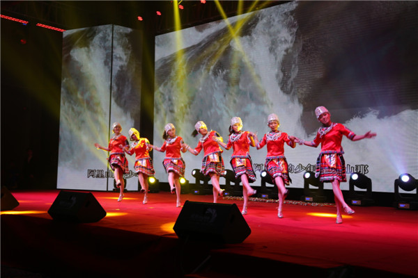 看,维吾尔族姑娘跳起了《花儿为什么这样红》,婀娜柔美,风情万种;藏族小伙领着心中的卓玛也前来道句《扎西德勒》;苗家姑娘充分展现了《阿里山的姑娘》清新灵动;红遍大江南北的《狐狸叫》更是将晚会推向高潮,high翻全场。
