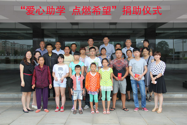 8月26日,“爱心助学 点燃希望”捐助仪式在公司一楼会议室举行,10名贫困家庭的学生每人收到了3000元的爱心助学金。