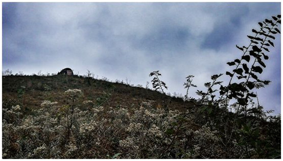 说话间,听得不远处有狗叫。转过一个山弯,看到一个简易的窝棚搭在缓坡的最高处。远处连绵的山头如无数的青螺。