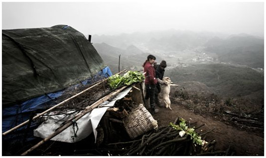 定期上山来送粮送菜的是男人的老婆,平时住在山下。
