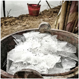 夜里风大而冷,半桶水放在窝棚外,不到半夜就结成了冰