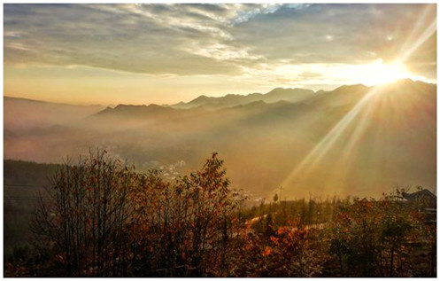 我夸她讲的方言好听,她用手一指:“山那边就是四川,离我们不远咧。”