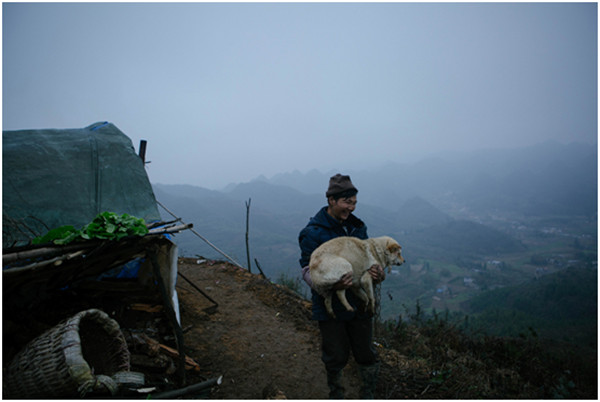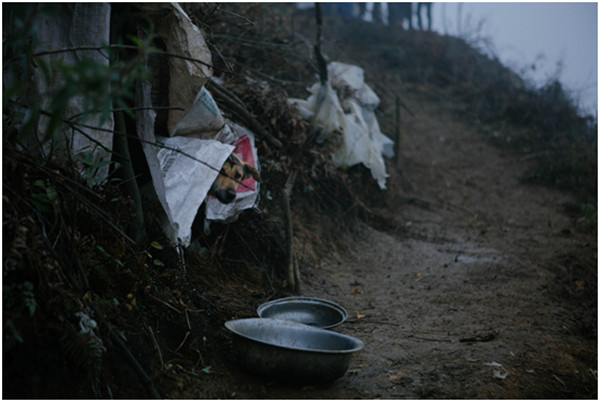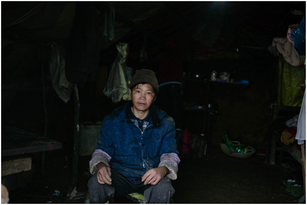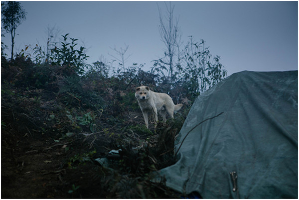 男人已经在这座窝棚里住了3年。3年前带上来的两只狗已经养了三窝狗崽子。大大小小的土狗时刻围绕着它们的主人。
