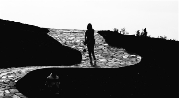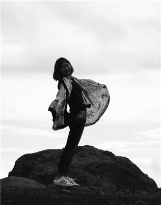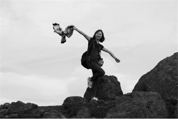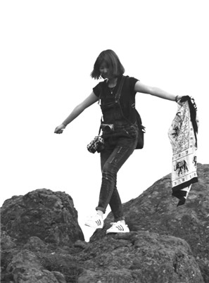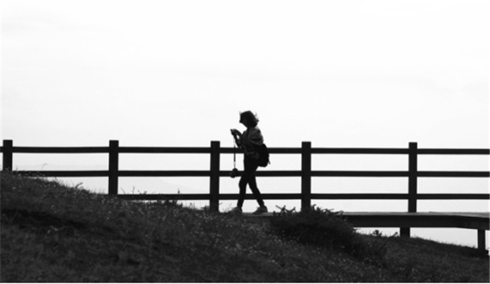 行走在山脊上,风拂起她的栗色头发,乱了姿势。