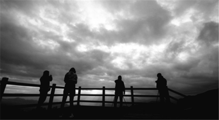 凭栏处,人影流动,头顶是霞光万道,脚下是云海翻涌。