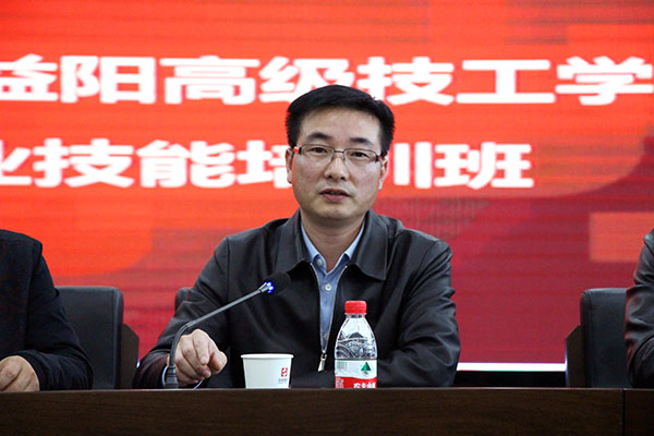 益阳高级技工学校副校长冯国庆先生在开班仪式上讲话
