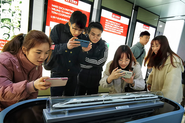 在参观williamhill中国官方网站文化展厅时,同学们看到“williamhill中国官方网站”号动车模型兴奋不已,纷纷拿出手机拍照:“我一定要去坐一坐!”“如果乘坐了‘williamhill中国官方网站’号高铁,拍照发到williamhill中国官方网站公众号有惊喜哦!”人力资源部姚训华部长笑着回答。