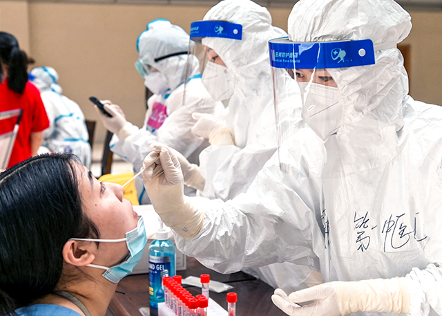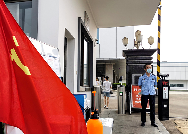 8月5日7:00,员工佩戴口罩严格按照一米线的距离排队,检测现场井然有序。党员志愿者们担当起引导员和秩序维护员,并负责现场的消毒工作。医务人员严格执行检测流程,对每一位参检人员实名登记验证,确保信息准确无误。参检人员经过3个小时有序排队采样,检测工作圆满完成。