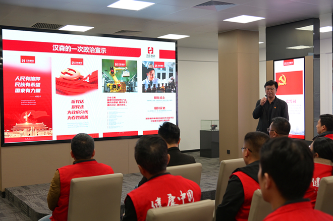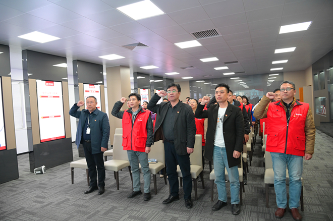 在新落成的公司党群活动中心,党委副书记符人慧带领全体共产党员重温入党誓词,“我志愿加入中国共产党”的铮铮誓言久久回荡。