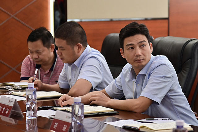 敖凌松副总裁在听取营销管理部实习生发言后喜形于色