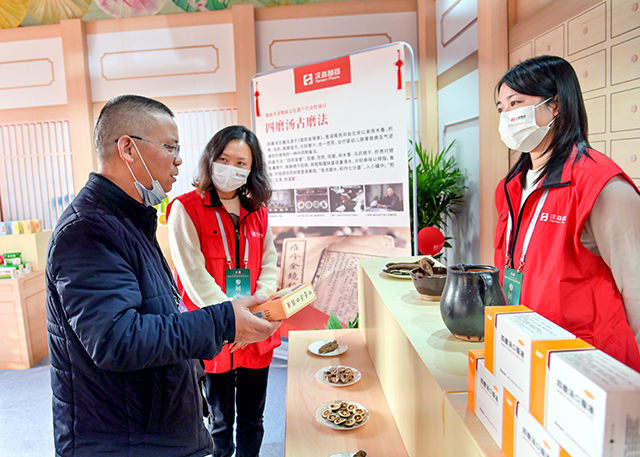 工作人员进行四磨汤古磨法现场展示