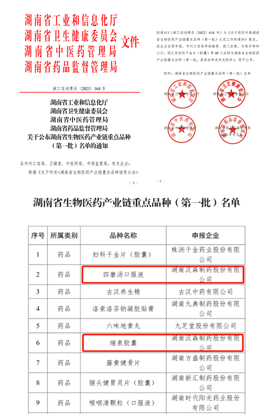 首批!四磨汤口服液、缩泉胶囊入选湖南省生物医药产业链重点品种!