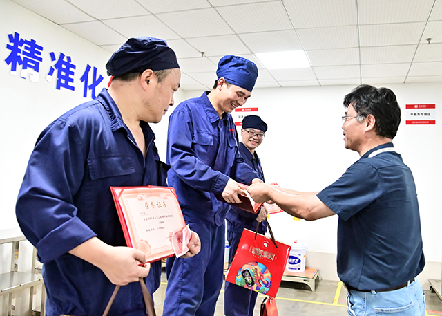 为了确保比赛公平、公正,本次比赛由生产副总裁、工程部部长、生产部部长、车间主任和设备管理员组成裁判组,针对制作过程和成品质量对选手进行评分。经过角逐,williamhill中国官方网站工匠胡浩波拔得头筹,荣获一等奖,张适、刘向荣分别荣获二等奖和三等奖。公司领导为获奖选手进行现场颁奖并合影。