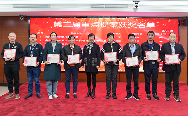 会上对第二届重点提案进行了颁奖。经评审,工程部吴梦蛟提出的《口服液灌装机托瓶套部件重复利用》、口服液车间王素娟提出的《优化自动灯检机人员岗位配置》的提案评定为三等;口服液车间罗艳红提出的《降低洗瓶机喷淋板清洁与针头堵塞频率》、固体制剂车间姚丹提出的《降低胶囊充填机药粉损耗量》的提案评定为五等;生产部田明提出的《关于公共区照明控制方式优化》、口服液车间张银环提出的《降低贴标机字粒垫板损耗》、工程部张世雄提出的《提升口服液III线灭菌柜自来水阀门操作便利性》的提案评定为六等;安环部何平提出的《减少脱泥药剂使用量》的提案评定为七等。曹建平获得“提案王”称号。