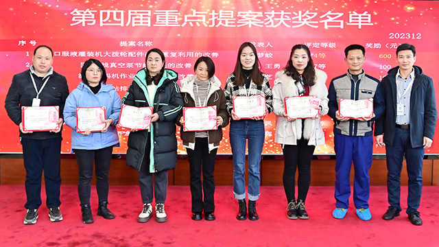会议首先对2023年12月的各推进奖项进行颁奖,并对精益生产项目一期开展的12个QC课题予以表彰。QC课题组长王秀作为代表在会上分享《人工牛黄甲硝唑胶囊包装岗位人均产出量提升》的做法与成效。