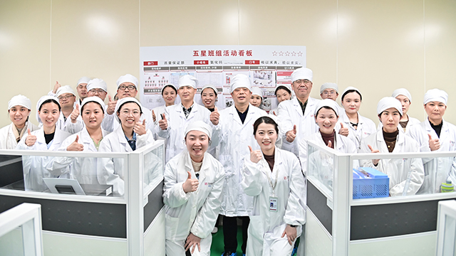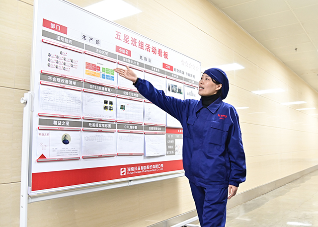 评审时,首先由组长通过看板介绍班组的建设情况,再由组员介绍班组的活动案例,然后是评审组提问环节。主要从团队建设、现场管理、效率指标、成本管理等纬度,考察班组是否达到相应等级标准。经过严格考核评分,质量保证部“氧化钙”组、生产部“先锋队”组、口服液车间Ⅳ线“向日葵”组和“精益之光”组顺利通过“一星班组”认证。