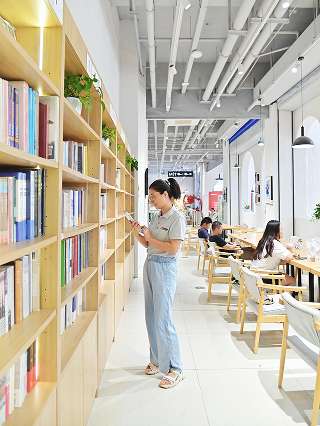 第二站是打卡长沙最美书店几何书店。大家穿梭在书架之间,选择自己喜欢的书籍,在阅读区细细品味起来,沉浸在知识的海洋里,体验阅读之乐。
