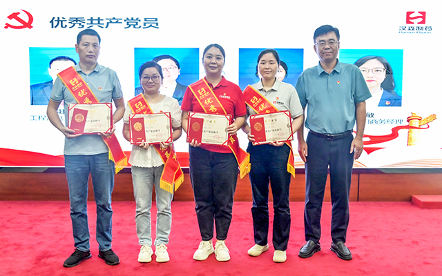 会上,公司党委副书记符人慧宣读《关于表彰优秀共产党员的决定》,董事长、总裁刘正清和党委书记、副总裁傅舰军为郭建波、欧阳琼、龚含慧、熊敏、欧艳南、蔡盛华、朱海华、黄平、蔡国军等9名优秀共产党员颁奖。