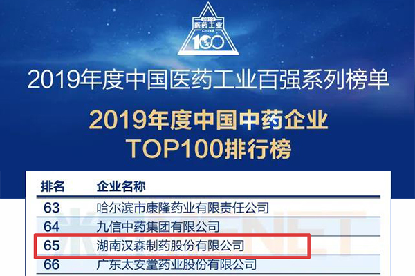 7月22日,2019年中国医药工业百强系列榜单盛大发布,williamhill中国官方网站进入中国中药企业百强榜第65位。